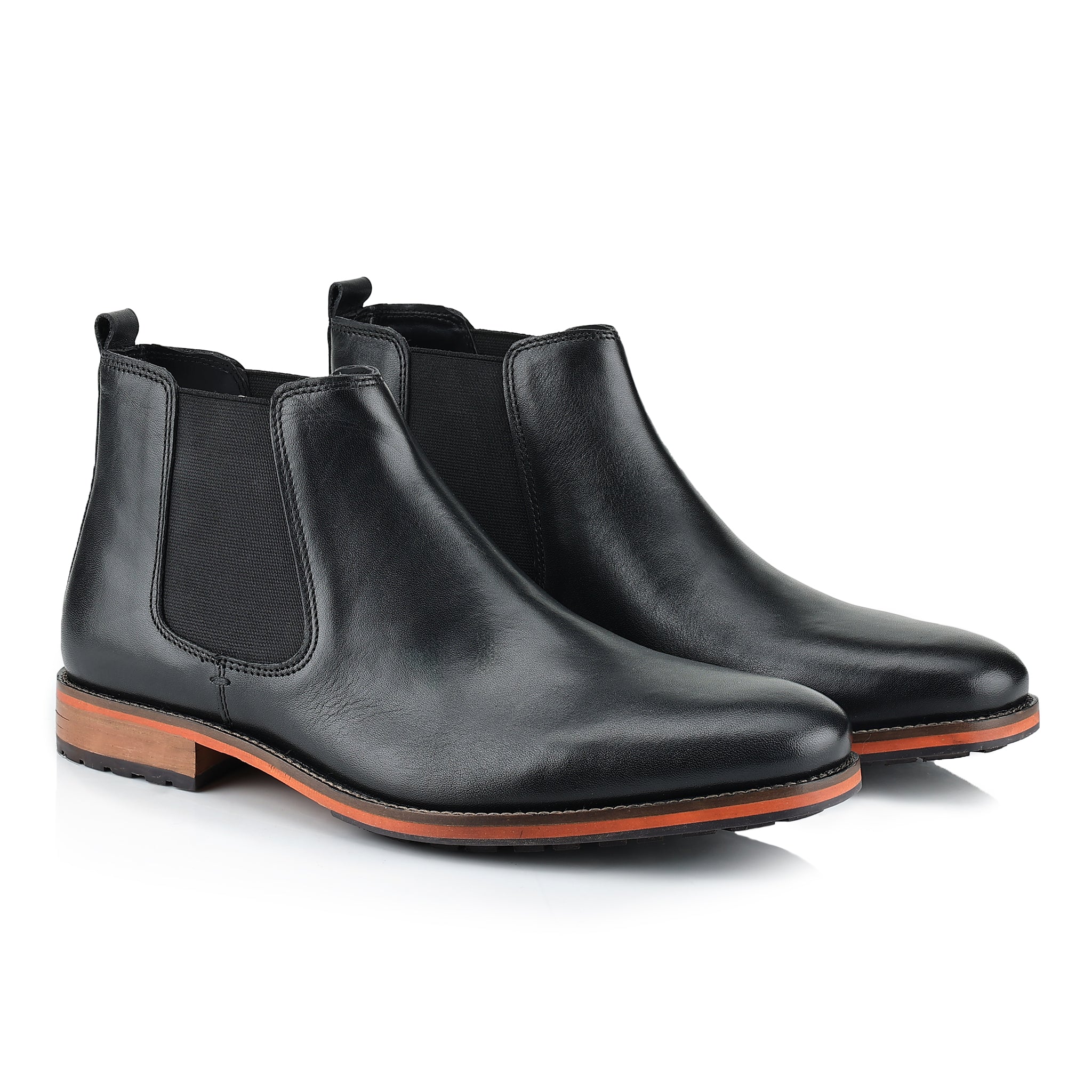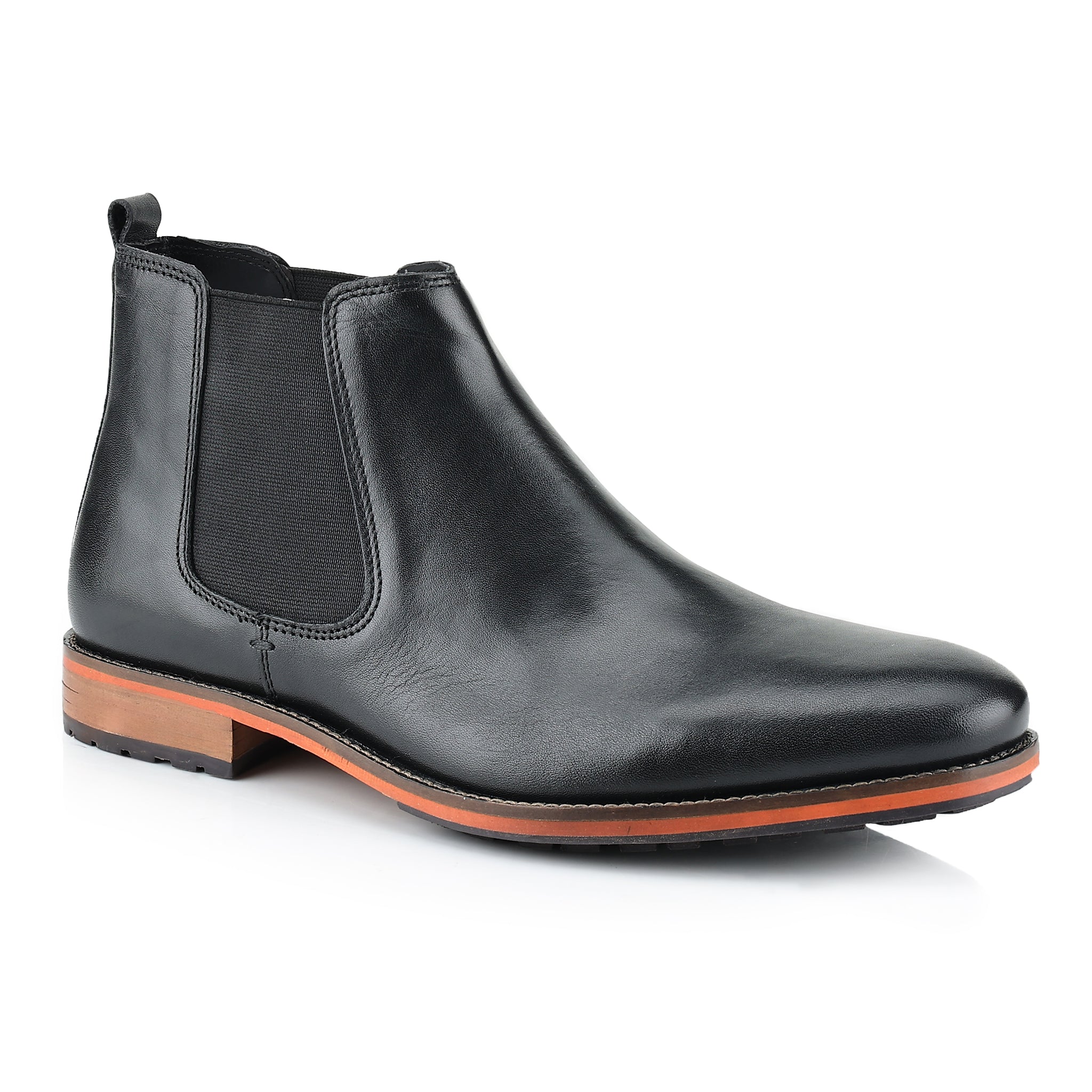 The Argyll Leather Mens Chelsea Boots are a sleek expression of timeless British style. Expertly crafted from smooth, polished leather, these mens boots showcase the classic Chelsea silhouette with elastic side panels and a rear pull tab for effortless wear. A subtly contrasting sole adds a modern edge, while the almond toe shape and minimal stitching keep the look clean and refined.
