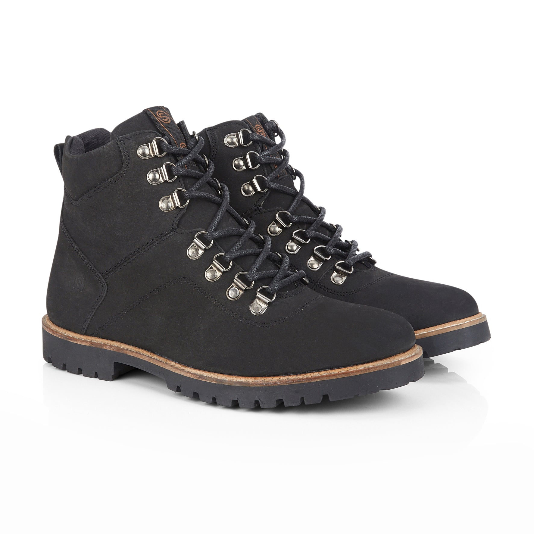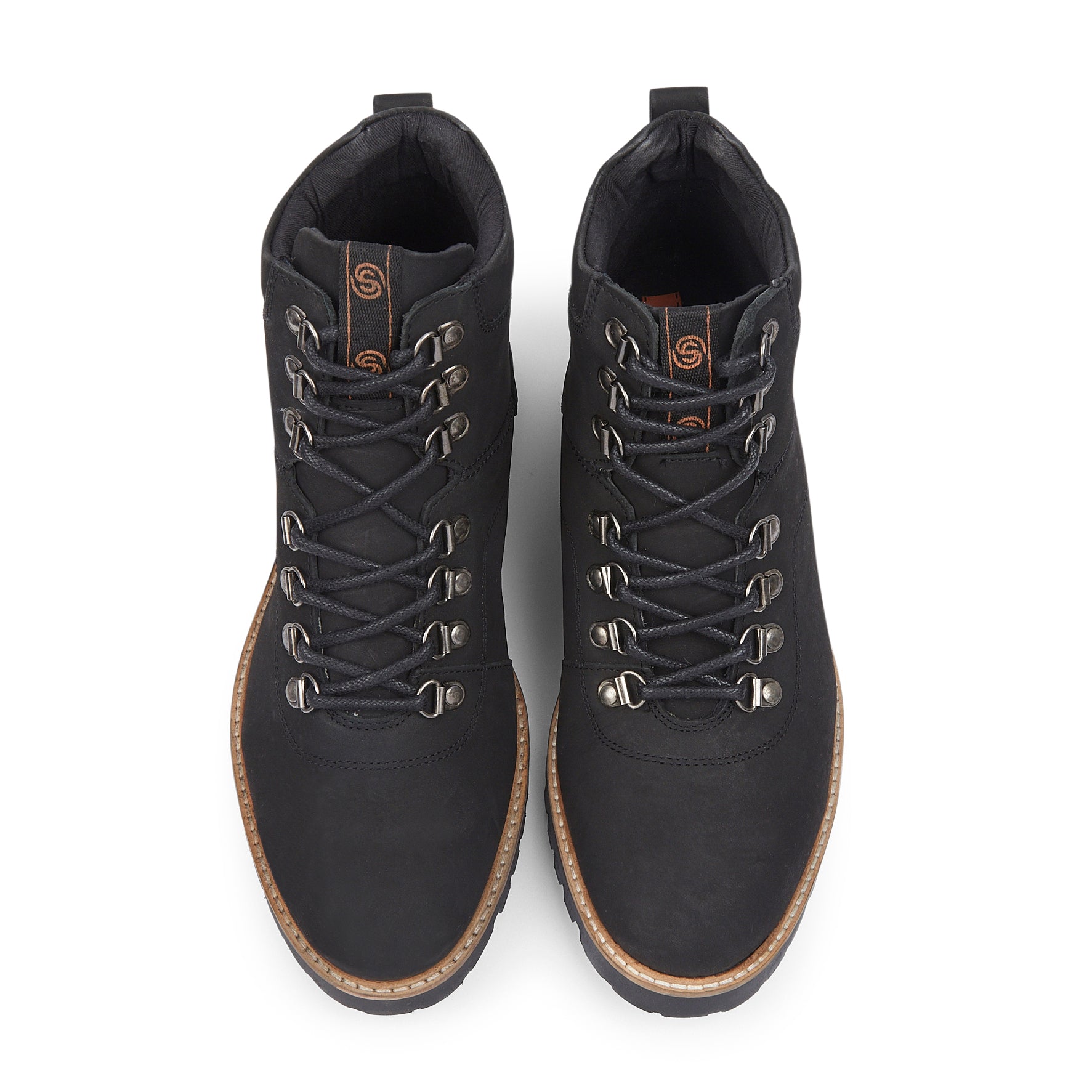 Conquer city streets or weekend trails with the Oslo Leather Lace Up Boots — a modern take on outdoor-inspired style. Crafted from robust nubuck-finish leather, these mid-ankle boots are built for durability, comfort, and grip. The alpine-style lace-up system with metal speed hooks ensures a secure fit, while the padded collar provides added ankle support for long-wear ease.