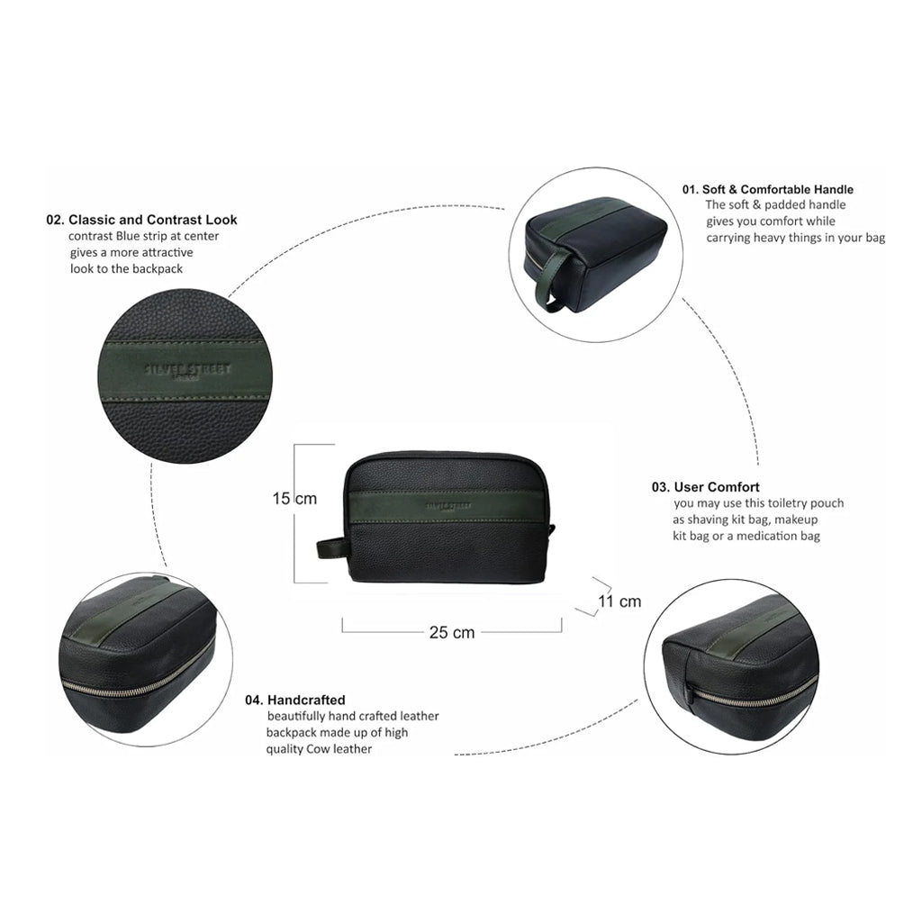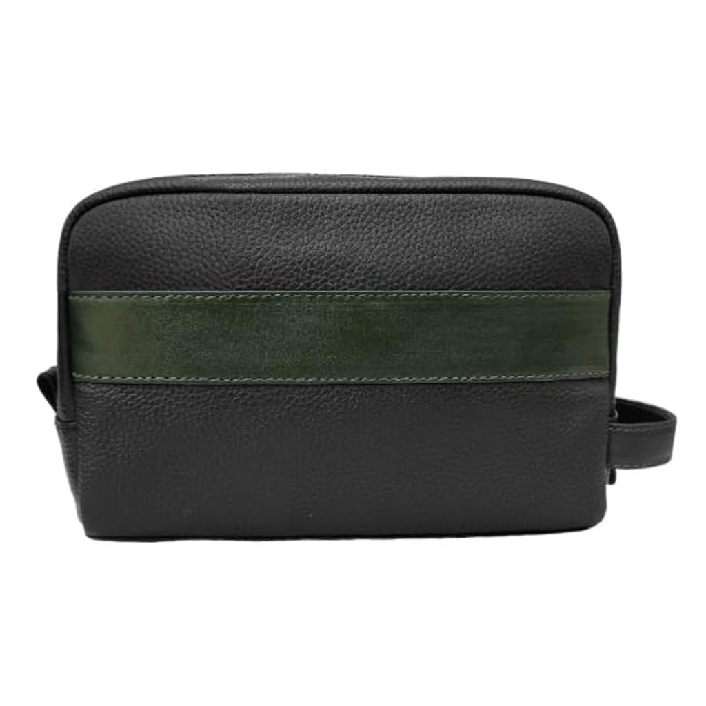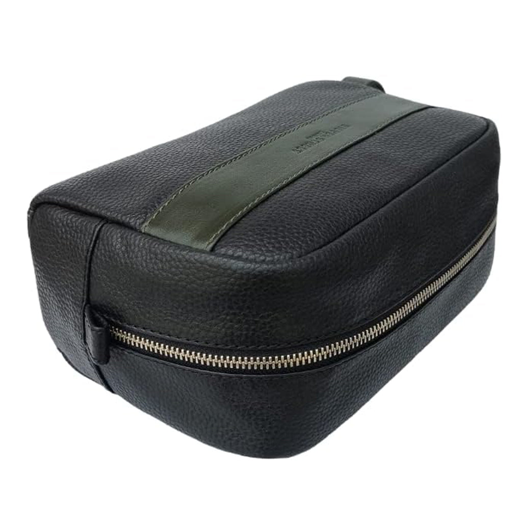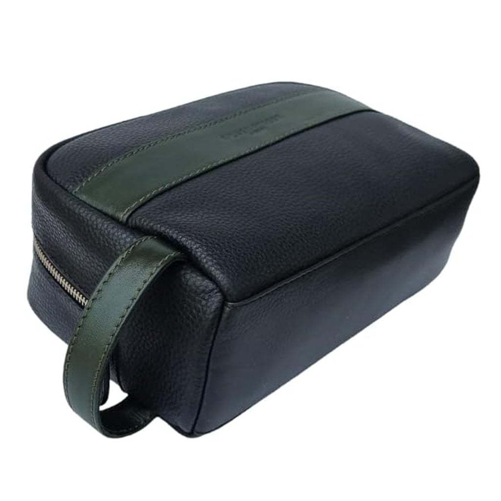 Inside, the waterproof lining ensures your toiletries stay protected, preventing leaks or spills from damaging the bag or its contents. The spacious interior is perfect for organizing all your grooming essentials, while the secure zip fastening keeps everything neatly in place. A side leather handle makes it easy to carry or hang, ideal for travel, gym visits, or daily use.