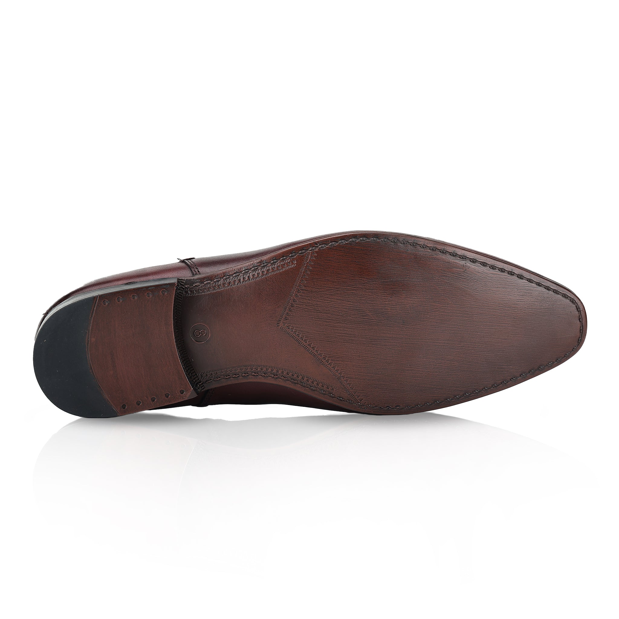 The tapered almond toe shape enhances a refined, dressy profile, suited for slim trousers and suits.